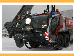 Flughafenfeuerwehr bei Flugzeugbränden. Der Panther CA-7 mit seinem Löscharm, ist